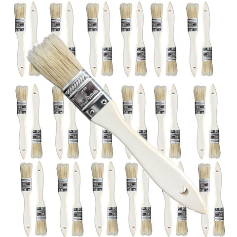 36 peças de boa qualidade 1 polegada de cabo de madeira 100% branco pura cerda pincel tinta